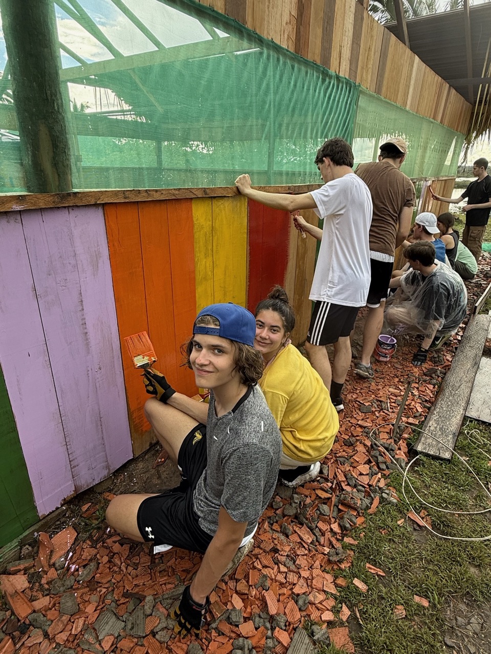 The students assisted in building a community centre for those living along the Amazon River, handing supplies to lodge workers, installing a bug screen for the building’s windows, and painting the structure’s base.