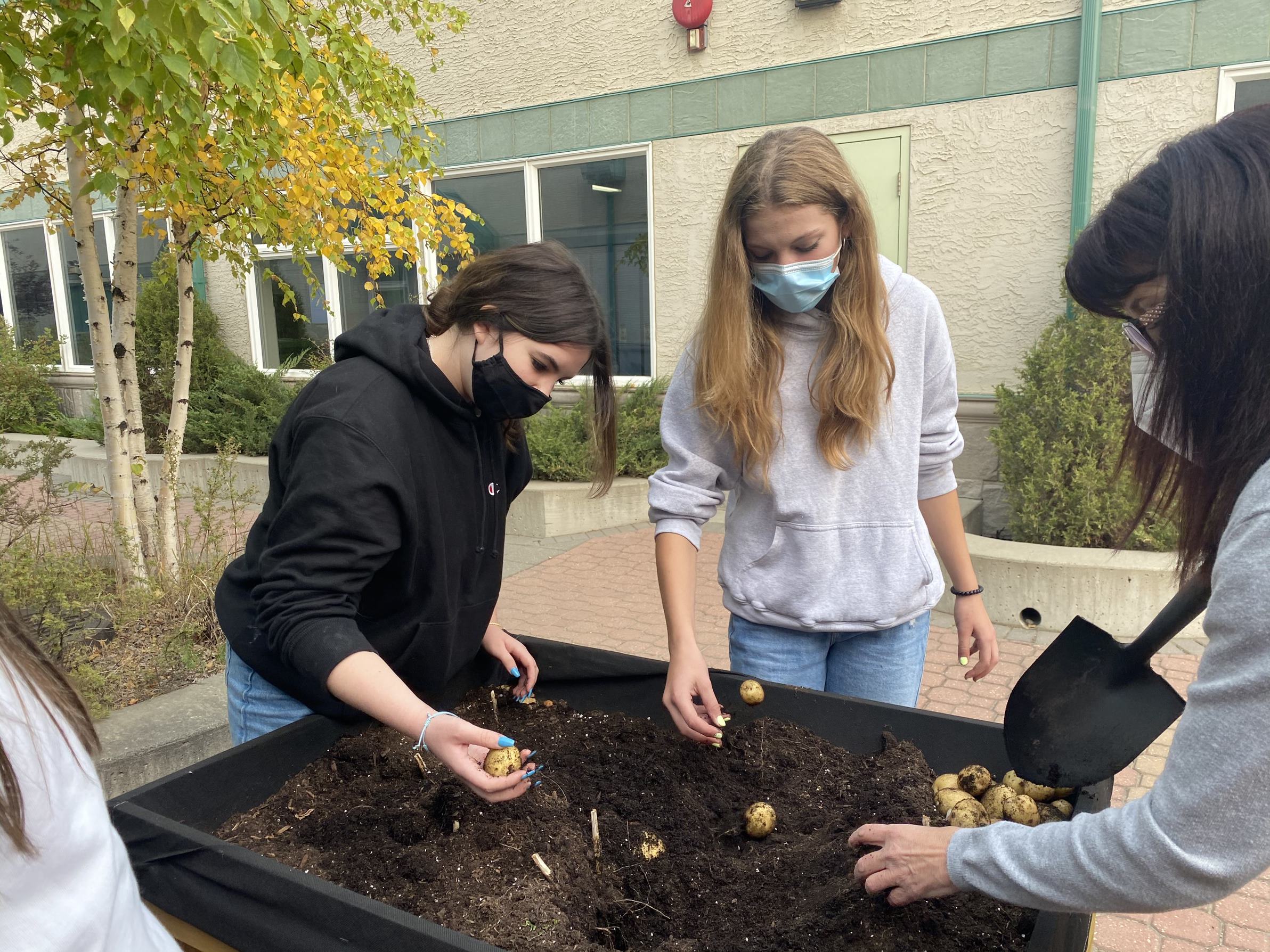 The Kindergarten, Grade 1, and Grade 4 students planted the 2021 school gardens last spring, planting root vegetables, potatoes, and carrots.