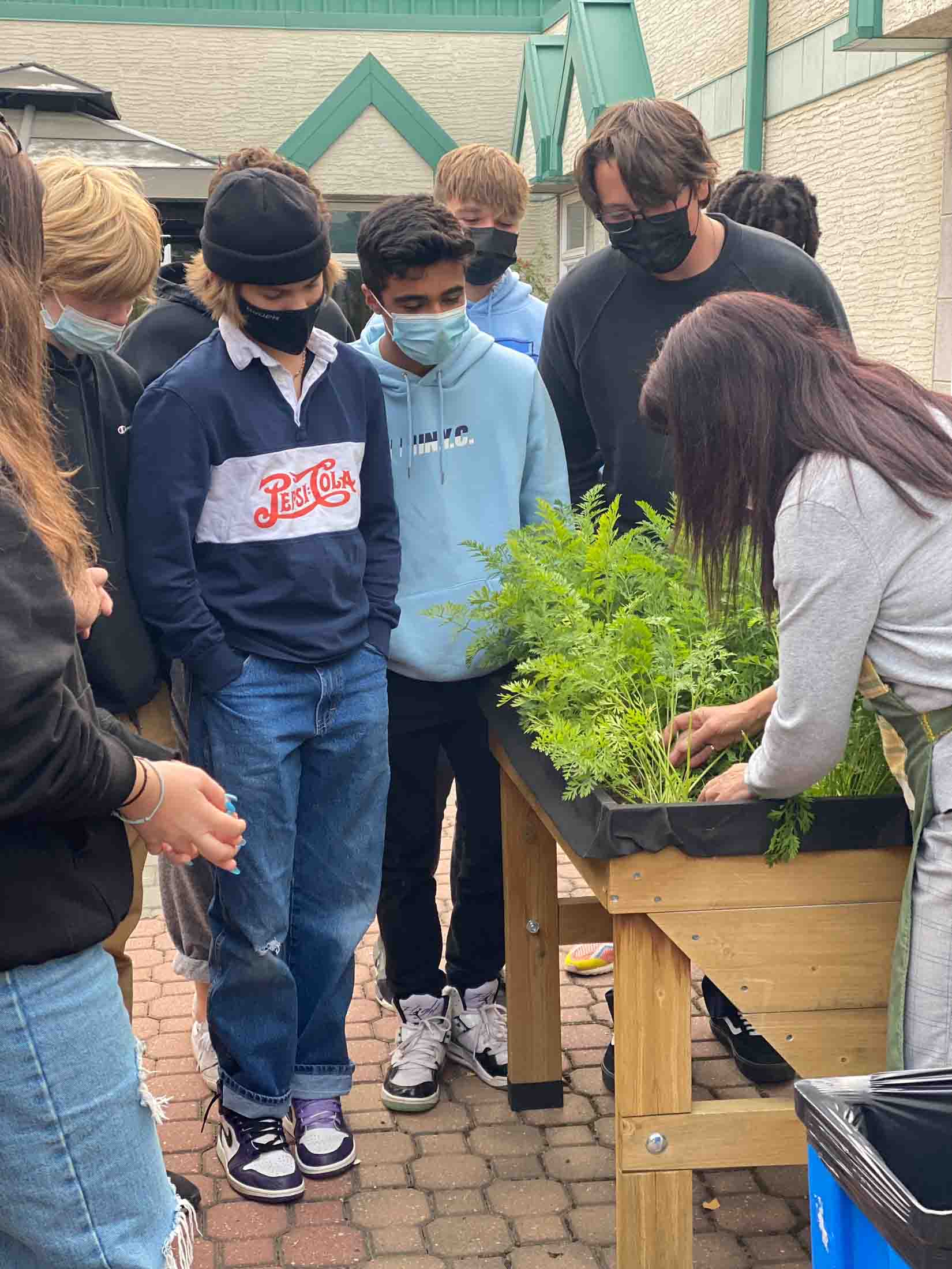 Ms. Stam’s Grade 9 class dug in, offering a helping hand with the harvesting. Students enjoyed taking part in this hands-on learning activity, playing in the dirt, enjoying fresh air, and witnessing the magic of the growing season.