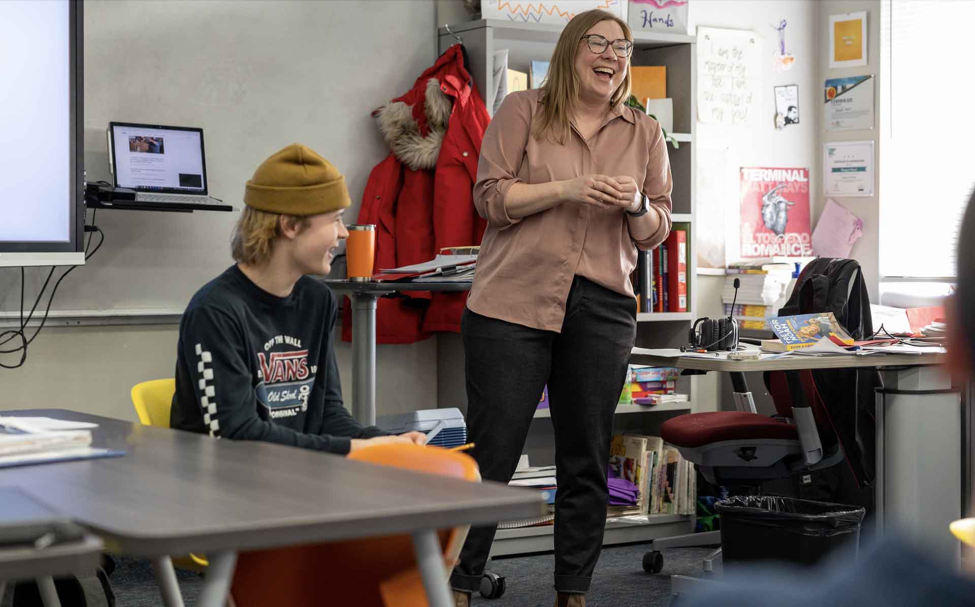 “Students can choose which environment is better for them, but most Grade 9-10 students come in every single day. I think this is in part because we have created a safe space where students are allowed much more autonomy in their learning, but know they have the support they need to succeed.” – Ms. Heard